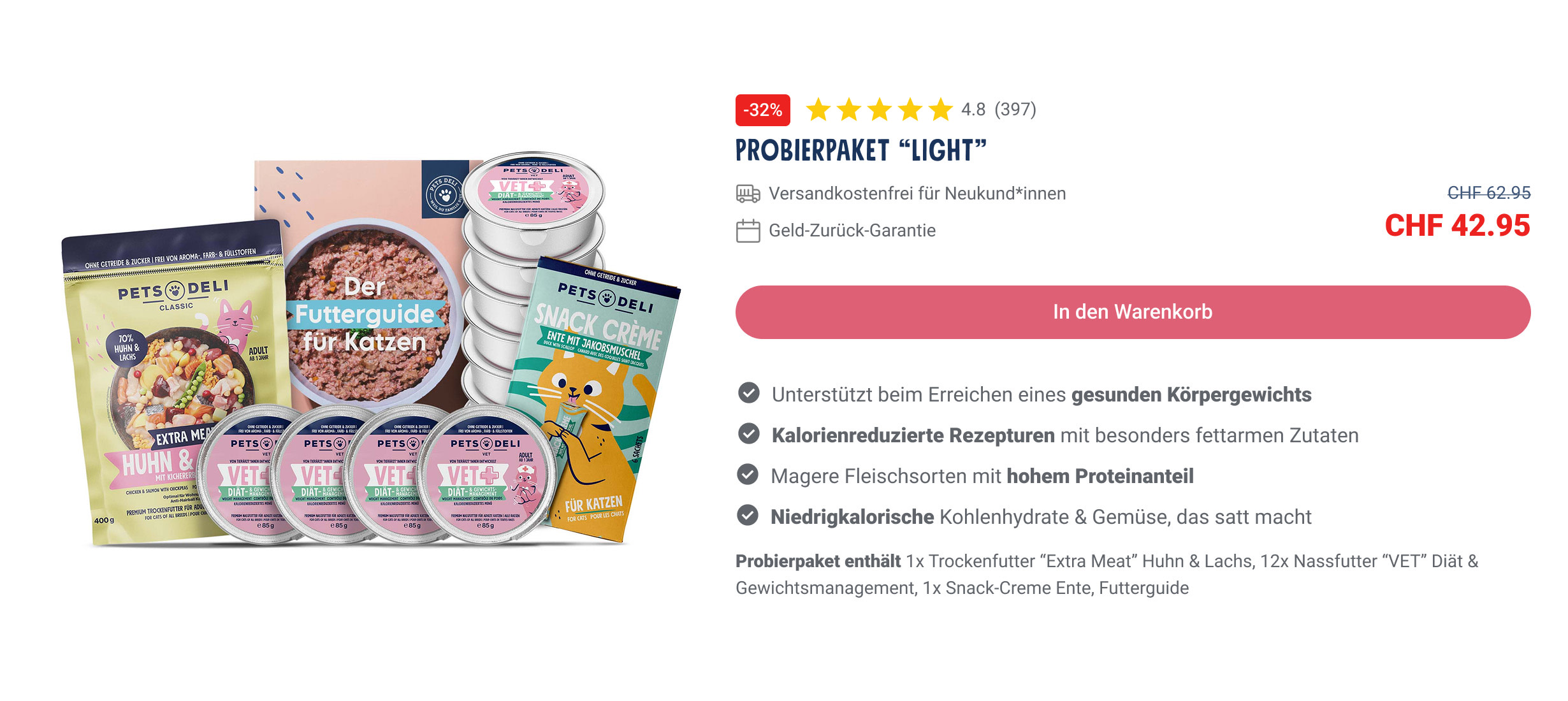 Willst du selbst auf Entdeckungstour gehen? Kein Problem! Neben Nassfutter für Katzen und Trockenfutter für Katzen findest du bei uns auch gesunde Katzensnacks. Schau vorbei und erlebe die Vielfalt von Pets Deli!